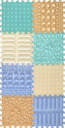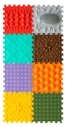 A wide range of mats textures and colours enhance imagination, improves blood circulation, promotes flat-footedness correction, helps to remove oedemas in legs and develops the vestibular system.